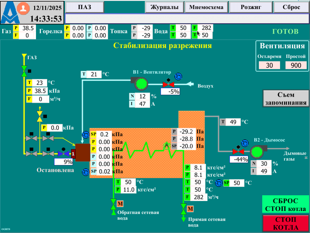 Работы по техническому перевооружению АСУТП водогрейного котла КВГМ-30-150